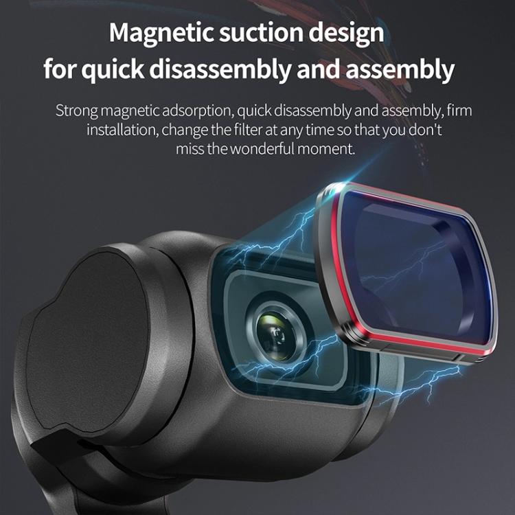 3. The aircraft-grade aluminum frame is laser-engraved with a matte black finish to prevent light leakage or ghosting, ensuring each filter has been rigorously tested and will not add extra burden to your gimbal or interfere with the pocket 3 For normal shooting, the weight is only 1.5 grams.