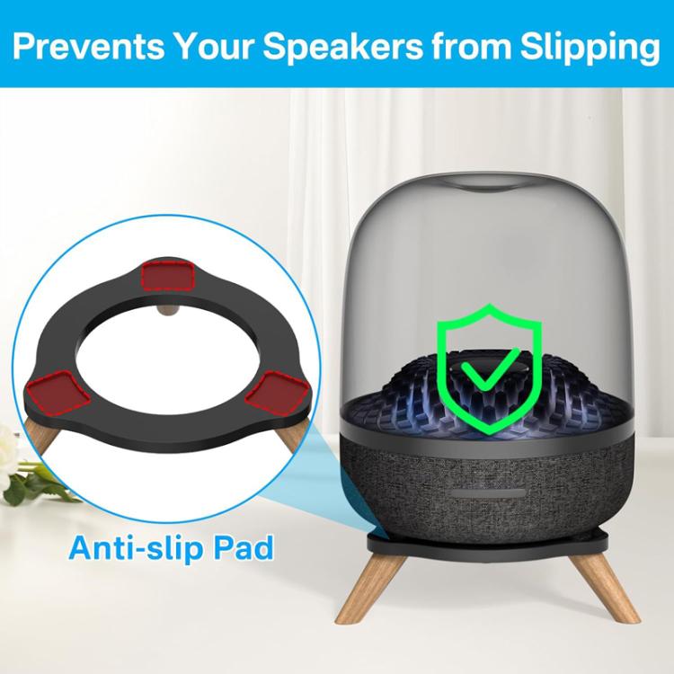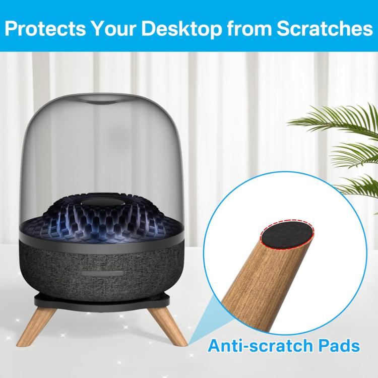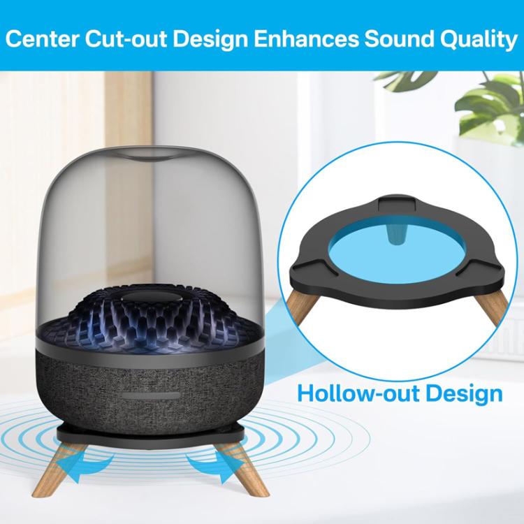 1. For Harman Kardon SoundSticks 4 / Aura Studio 3 / 4 2. Hollow design enhances sound clarity 3. Anti-slip and shock-absorbing pads ensure the stability of the device and prevent it from sliding, while protecting the desktop from scratches and wear 4. High quality acrylic combined with solid wood material, with a load-bearing capacity of up to 15 pounds, providing a stable structure that is unlikely to tip over 5. Beautiful and practical, suitable for placement in various areas such as living rooms and bedrooms 6. Note: only the stand is included, no other accessories are provided